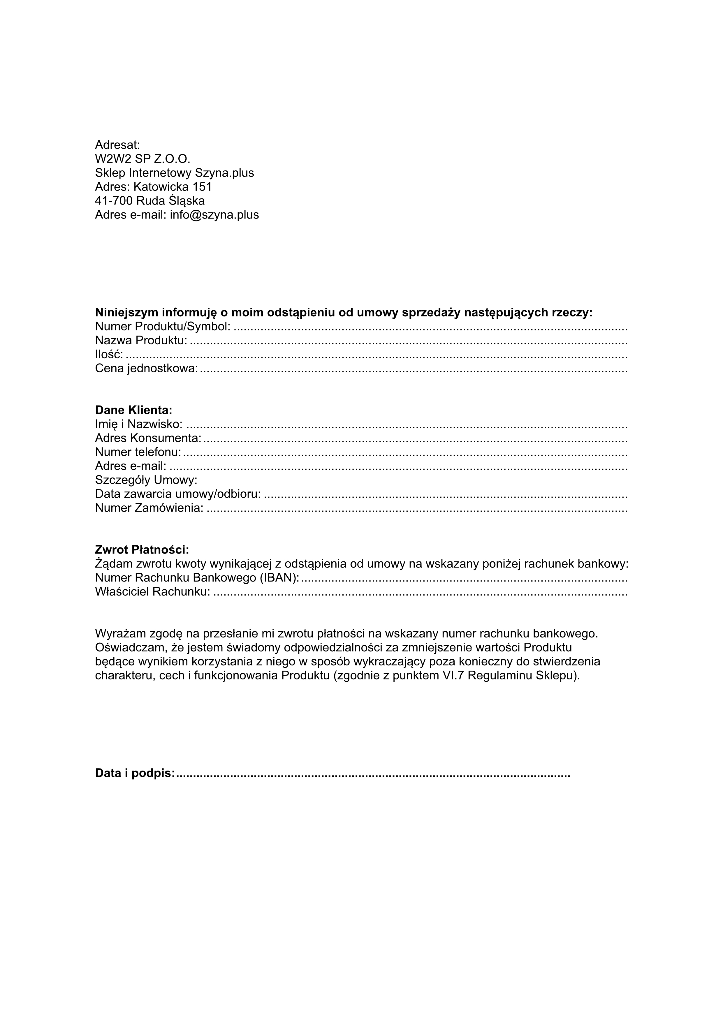 Wzór formularza odstąpienia od umowy jest dostępny do pobrania poniżej.